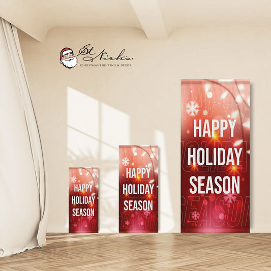 Show your holiday spirit this Christmas—and beyond—with Seasonal & Customizable Vinyl Pole Banners from St. Nick’s Christmas Lighting and Décor. Perfect for festive streetscapes, branding, and special events.