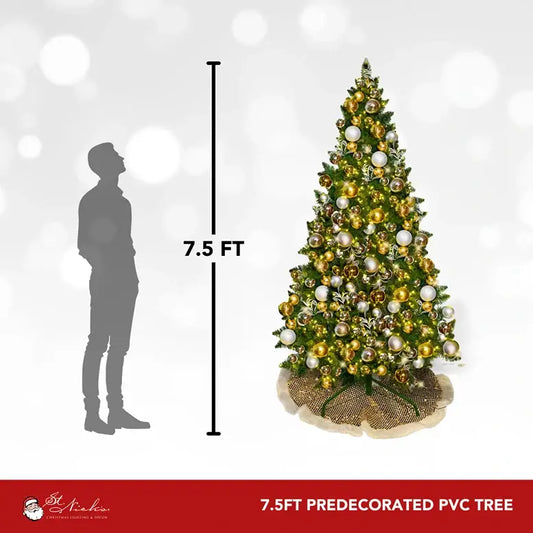 7.5FT Pre-Decorated PVC Christmas Tree Silver and Gold