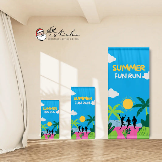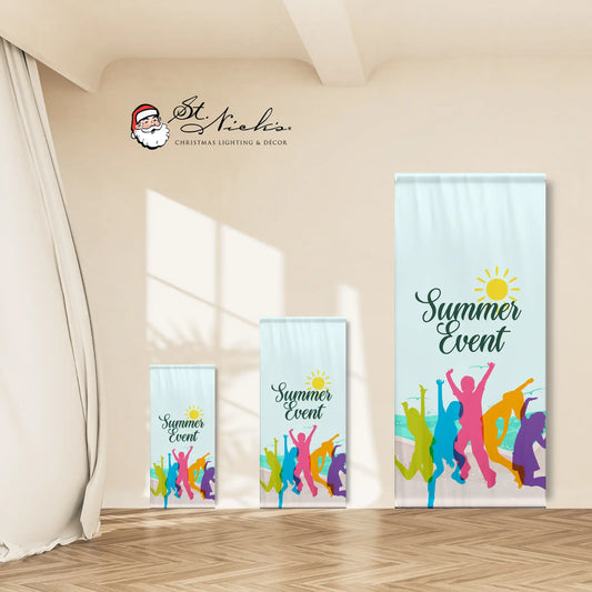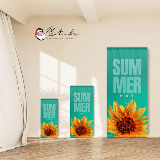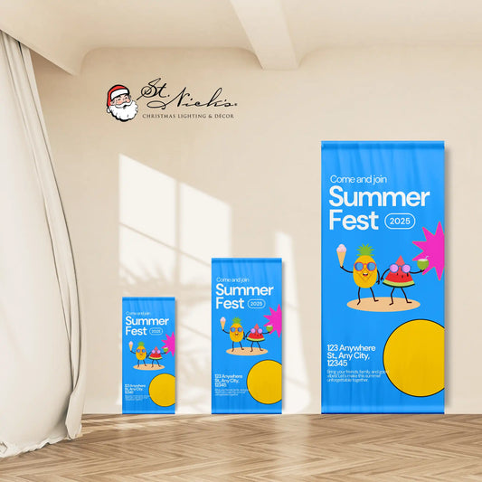Transform your space with amazing Seasonal Pole Banners from St-Nicks. Crafted using high-quality materials, these banners are designed to withstand the elements while making a bold statement. With St Nicks Services, you can trust their expertise in Print, Design, and Installation for a flawless finish.