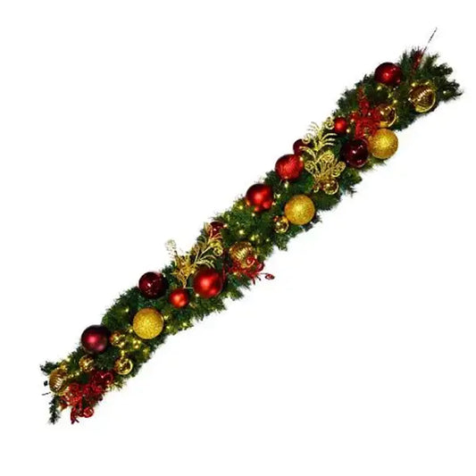 9'x14" Pre-Decorated Garland with Warm White Lights Red/Green/Gold