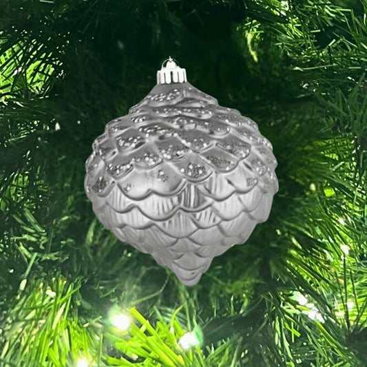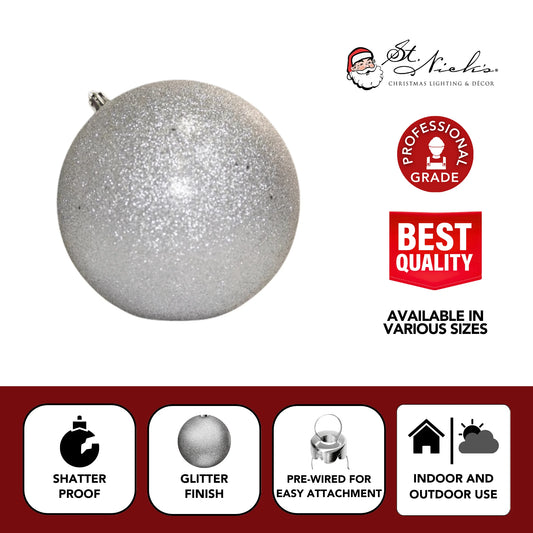 Silver Ornament Glitter with Shiny Ball - 100MM