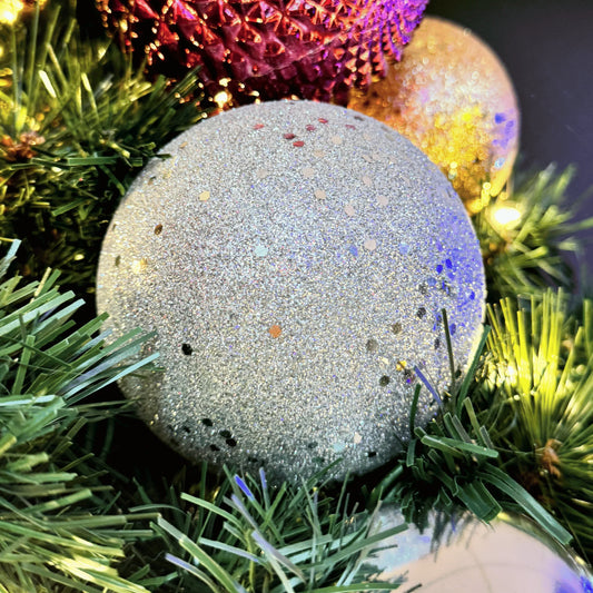 Silver Ornament Glitter with Shiny Ball - 100MM